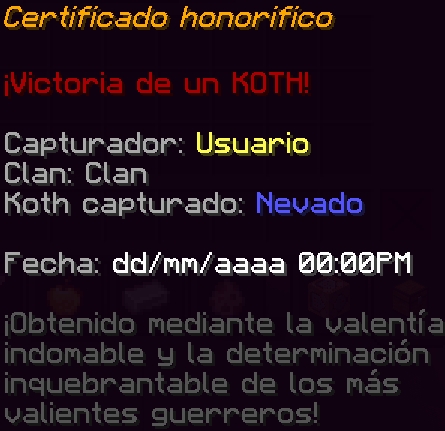 Podrás ver los horarios, teletransportarte o recompensas con el comando /koths. Las recompensas son las siguientes:
